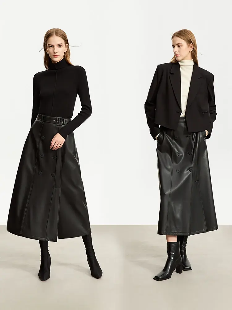 Retro A-Line Skirt Winter Simple Chic Umbrella Hem