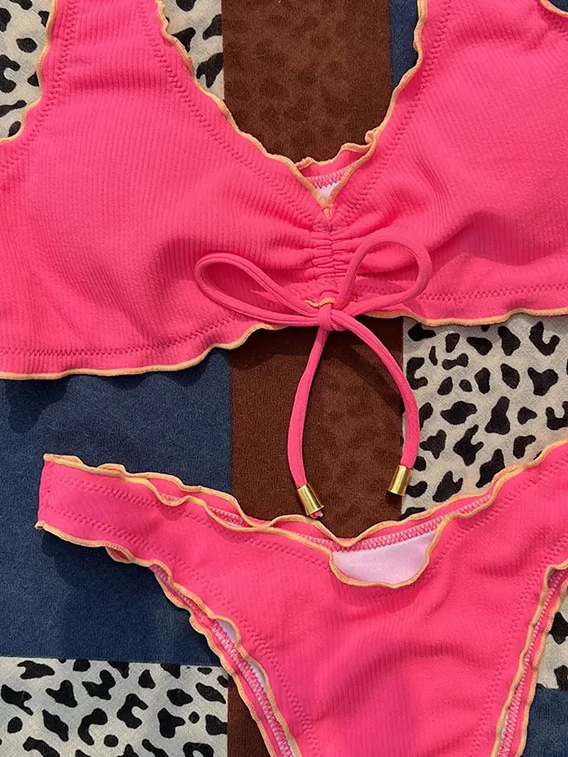 Material:This bikini set is crafted from a blend of polyester and spandex, ensuring a comfortable and stretchy fit.