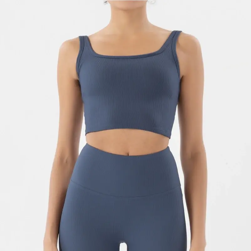 Ribbed U-Shaped Sports Bra Support Nylon Breathable Moisture-Wicking Yoga Top
