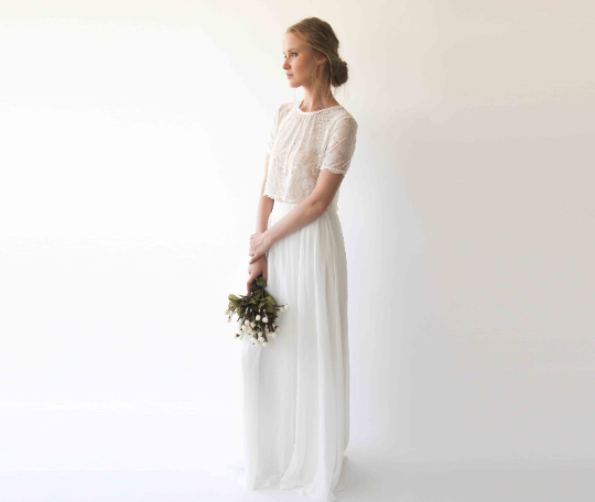 This ivory chiffon mesh skirt is designed to bring a unique touch to your wedding day. Featuring a floor-length cut and a comfortable elastic waistband, it's both elegant and easy to wear. Perfect for creating a memorable and comfortable bridal look.