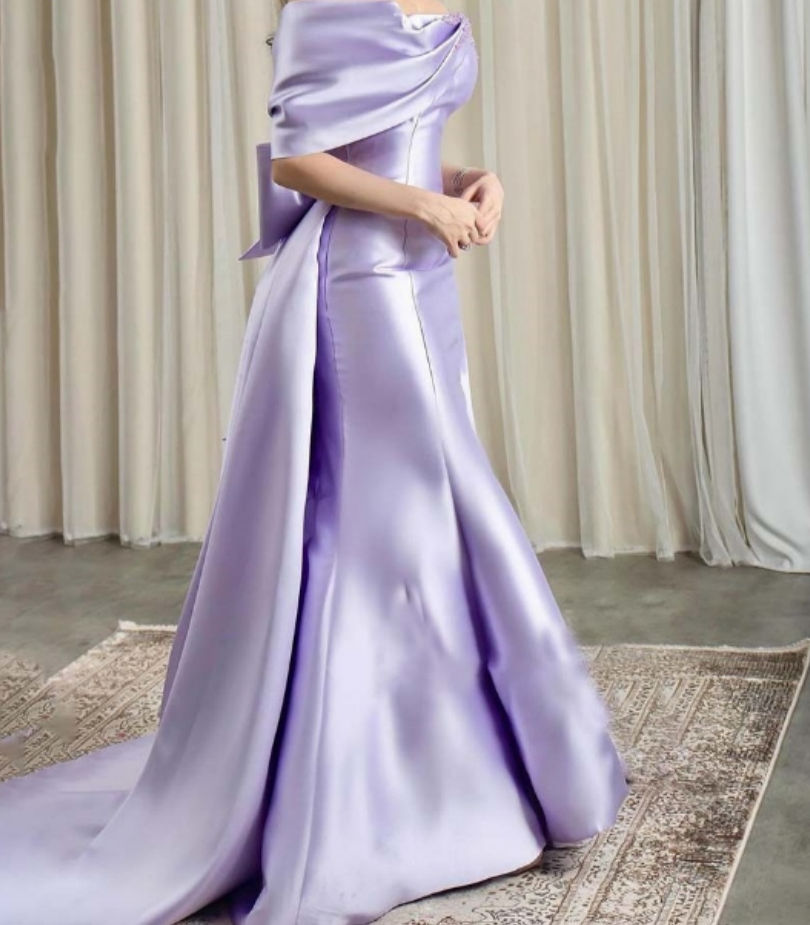 Custom-made Prom Gown, Mermaid Evening Dress, Purple Satin Off Shoulder Bow