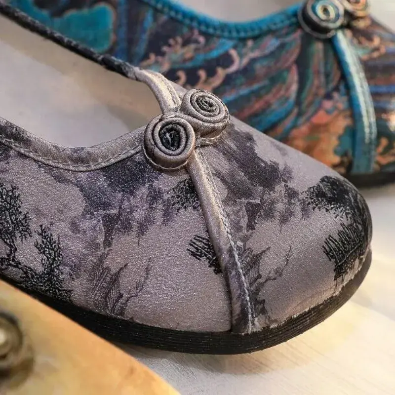 These loafers are crafted with a durable canvas upper, featuring intricate embroidery. The TPR outsole provides reliable grip and flexibility, while the hemp insole offers natural breathability and comfort. A soft cotton fabric lining enhances the overall comfort and quality.