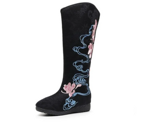 Round Toe Embroidered Boots Mid-Calf Side Zip Ethnic Style Footwear