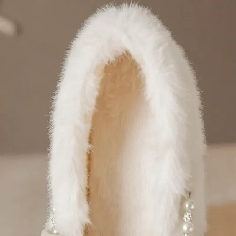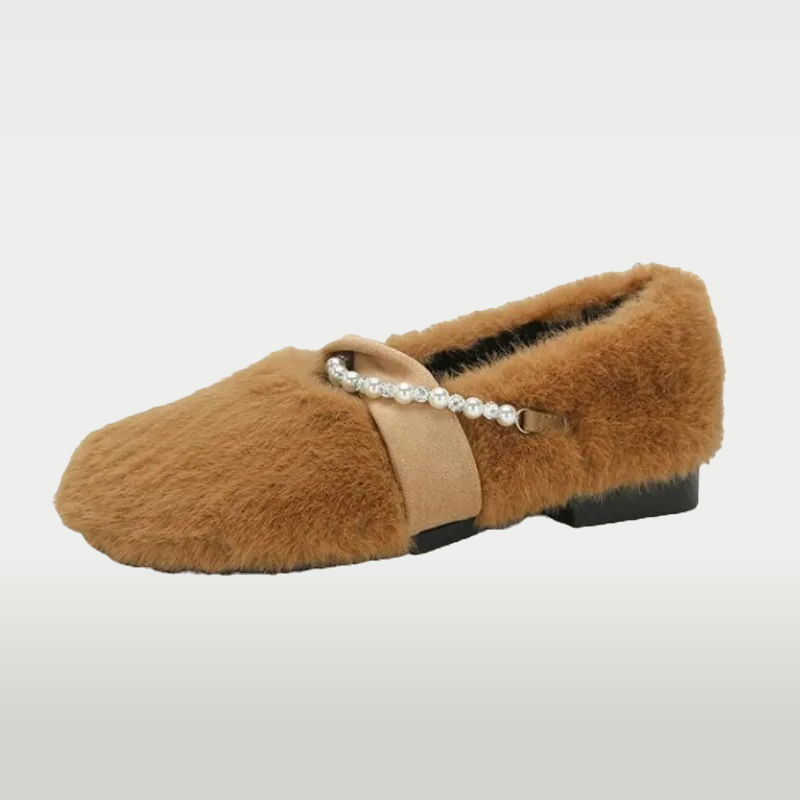 Round Toe Furry Slip On Loafers Flat Heel Comfortable Shoes