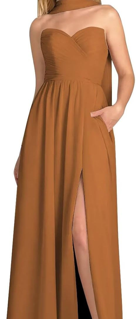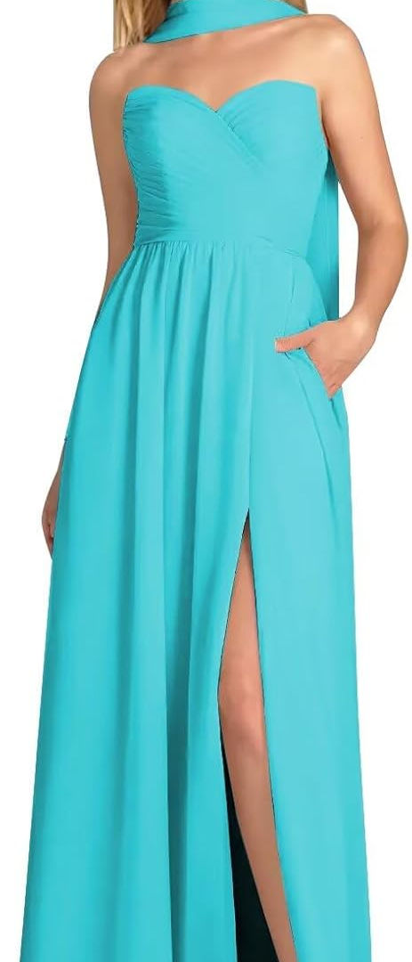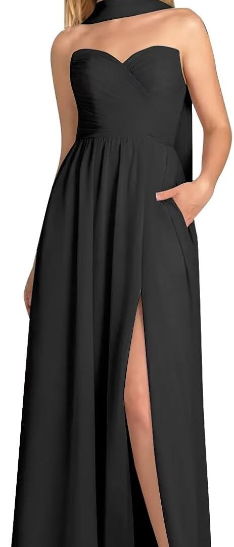 Chiffon Bridesmaid Dress Strapless Sweetheart Ruffle Slit Long Formal Evening Go