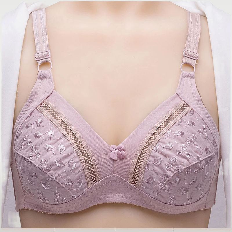 Seamless Cotton Bra, One-Piece Non-Padded Soft Lined Lace Coverage