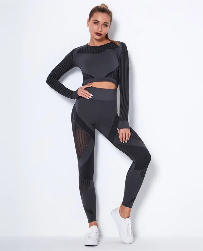 Seamless Hollow Out Yoga Set 2 Piece Workout Outfits Crop Top and Leggings
