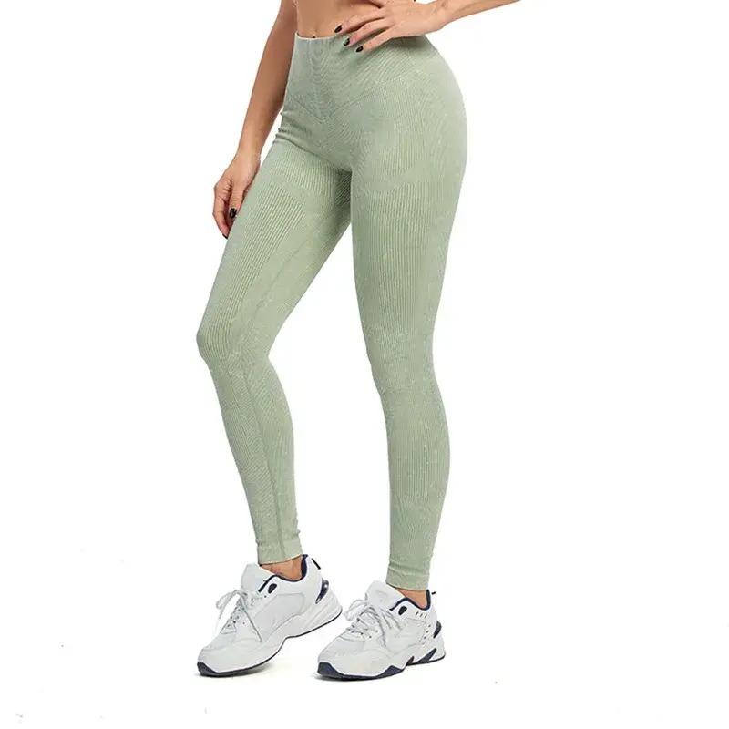 Seamless Ribbed High Waist Leggings - Yoga, Sports, Workout Tights