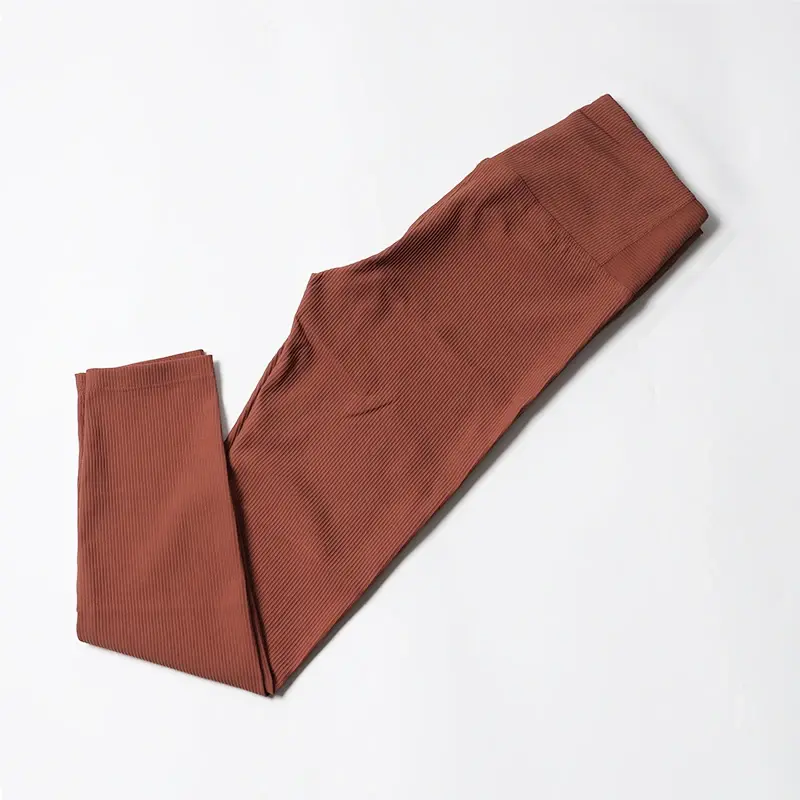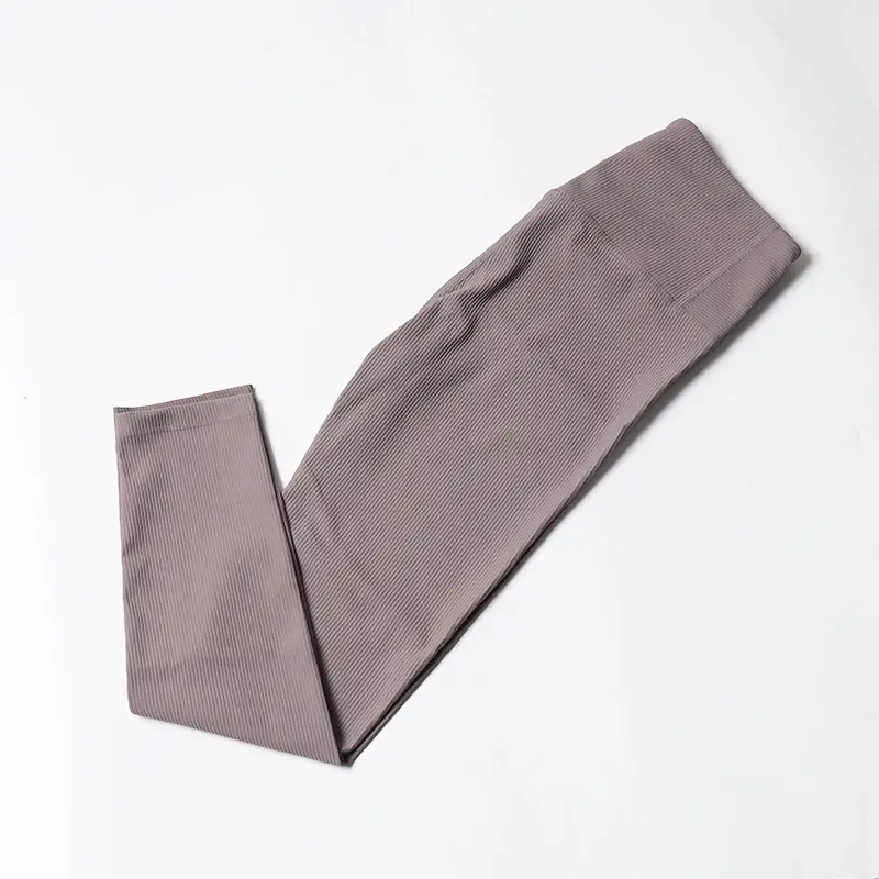 Seamless Ribbed Yoga Leggings - Push-Up Elasticity Sports Pants, Solid