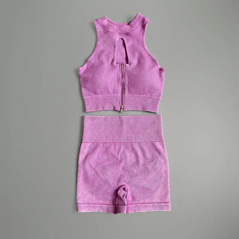 Seamless Ribbed Yoga Set Crop Top & Running Shorts Gym Workout Activewear
