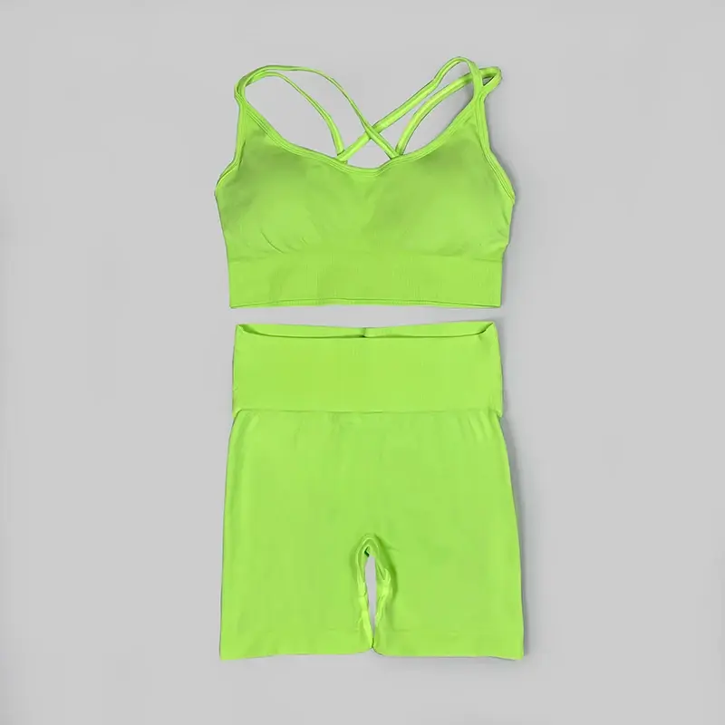 Seamless Yoga Set Workout Sports Bra High Waist Biker Shorts Set of 2
