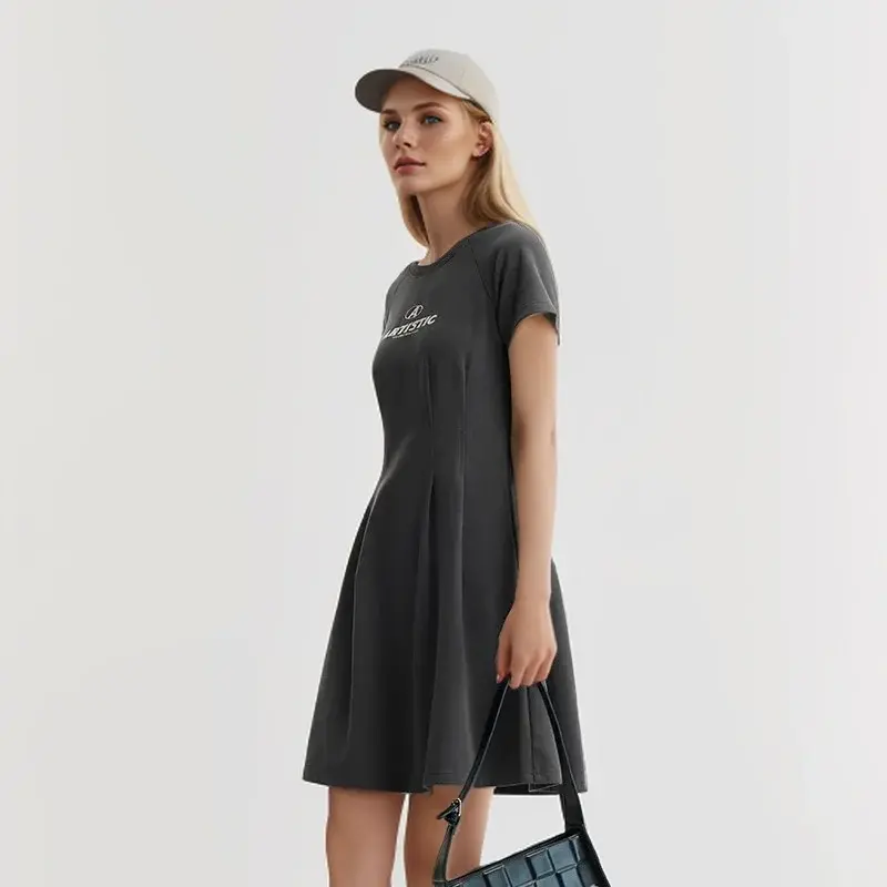 Tags: women's casual t-shirt dress knee length, loose fit summer dress with short sleeves, o-neck letter print casual dress, comfortable cotton blend dress for women, draped silhouette t-shirt dress, relaxed fit everyday summer dress, summer 2024 casual dress for women, women's graphic tee dress casual, waisted plug sleeve summer dress, slight stretch knee-length dress, casual dress for running errands, women's loose casual summer dress, middle age women's casual summer dress