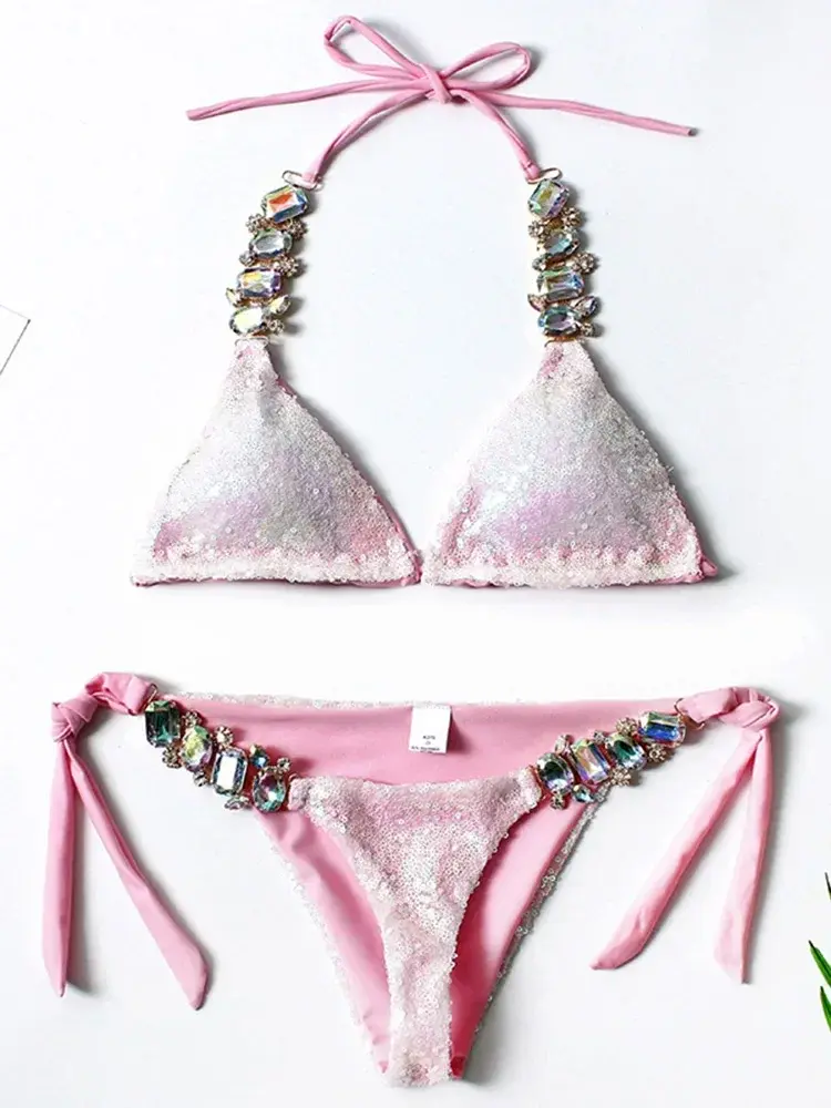 Sequined Rhinestone Bikini Swimwear - Two Piece Swimsuit with Shiny Details