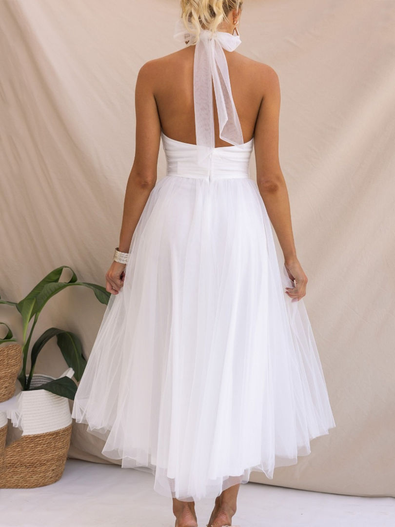 Sleeveless O-Neck Solid Polyester A-Line Casual Knee-Length Dress Single Breaste