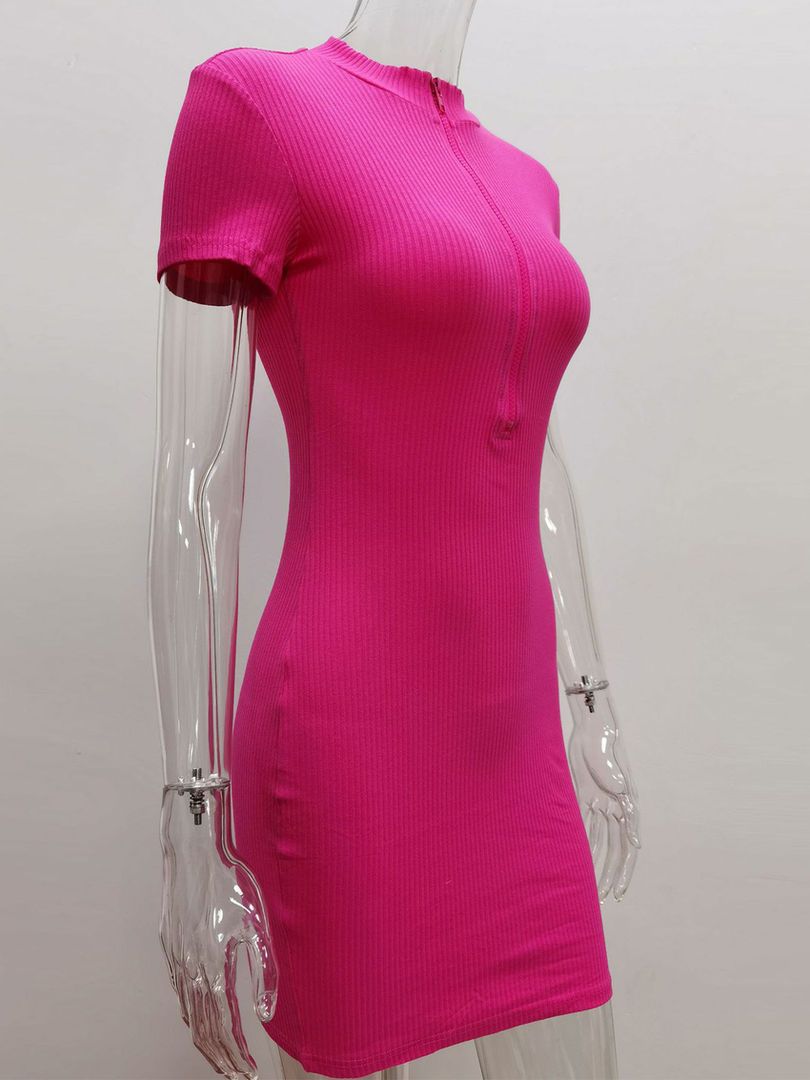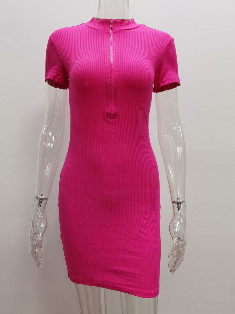 Solid Sheath Turtleneck Knee-Length Half Sleeve Polyester Bodycon Dress