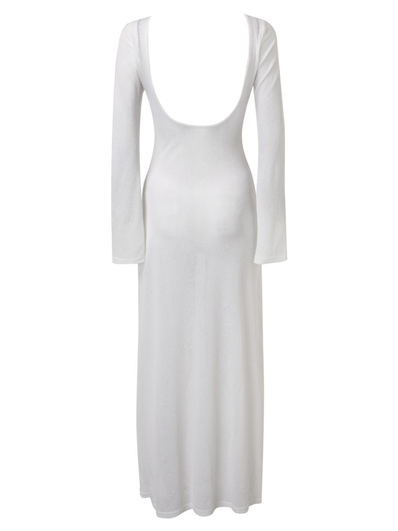 Sleeveless O-Neck Solid Polyester A-Line Backless Knee-Length Dress Cover Up