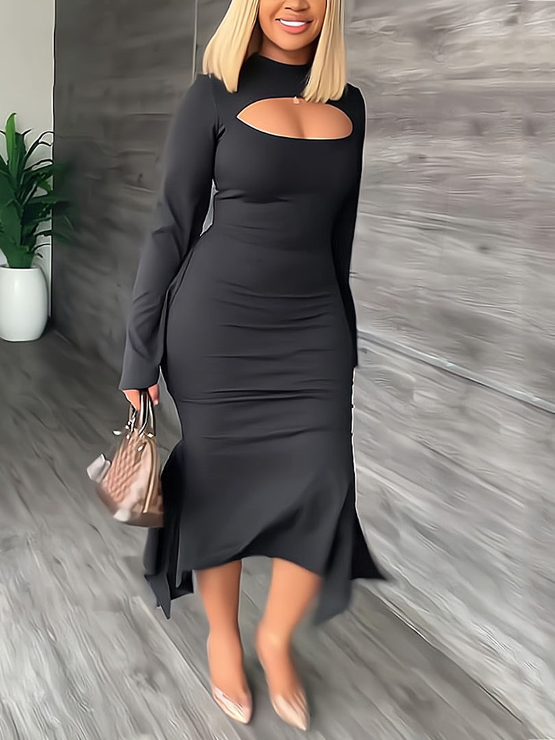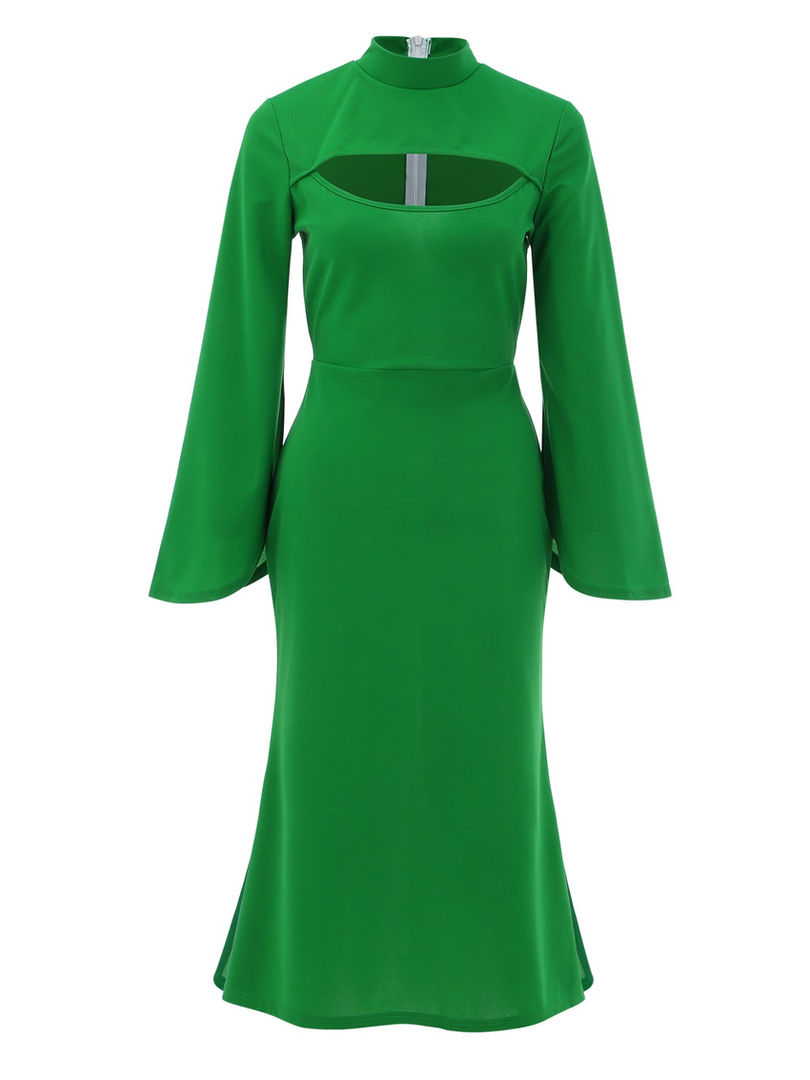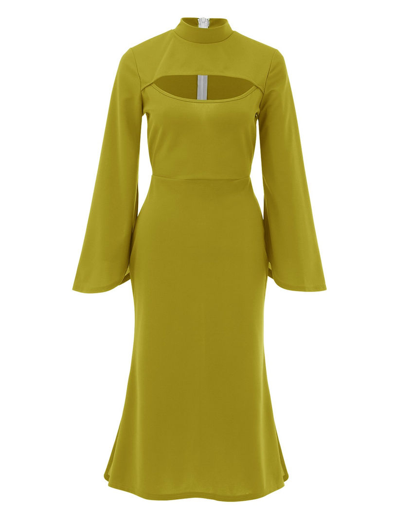 Solid Color Sleeveless Knee Length A-Line Dress High Stretch O-Neck Casual Style