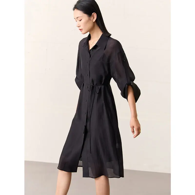 Sheer Belt Dress Summer Minimalist Casual Solid Off Shoulder