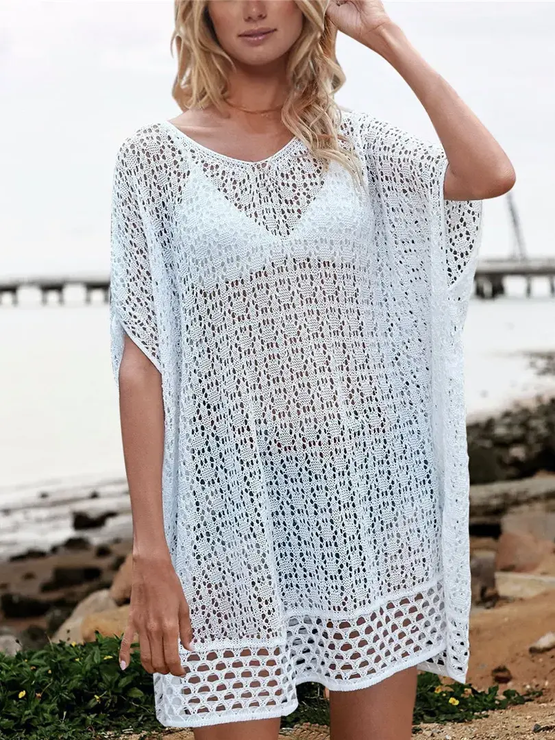 Sheer Crochet Tunic Beach Cover Up Hollow Out Summer Boho
