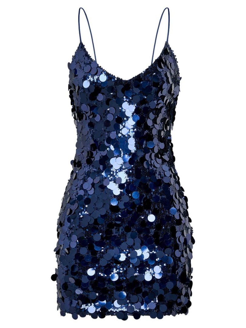 Shiny Sequins Sleeveless A-LINE Knee-Length Polyester Dress Solid O-Neck Backles