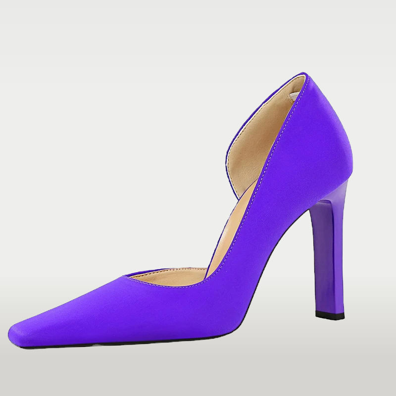 You're looking for shoes that make an entrance but don't make you regret wearing them halfway through the night. These silk pointed-toe pumps offer that perfect blend of striking style and thoughtful design, featuring a super high (8cm+) square heel for a confident, leg-lengthening look without the usual teeter. The slip-on design and contemporary shallow cut mean you're ready to impress, effortlessly.