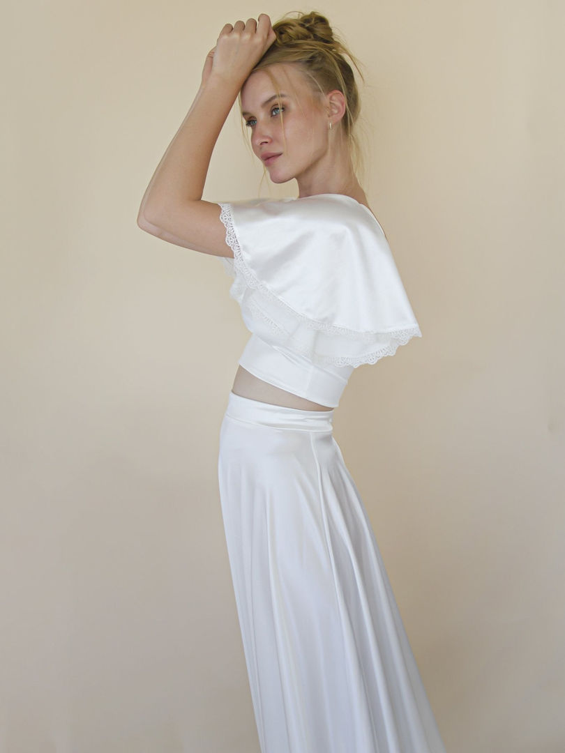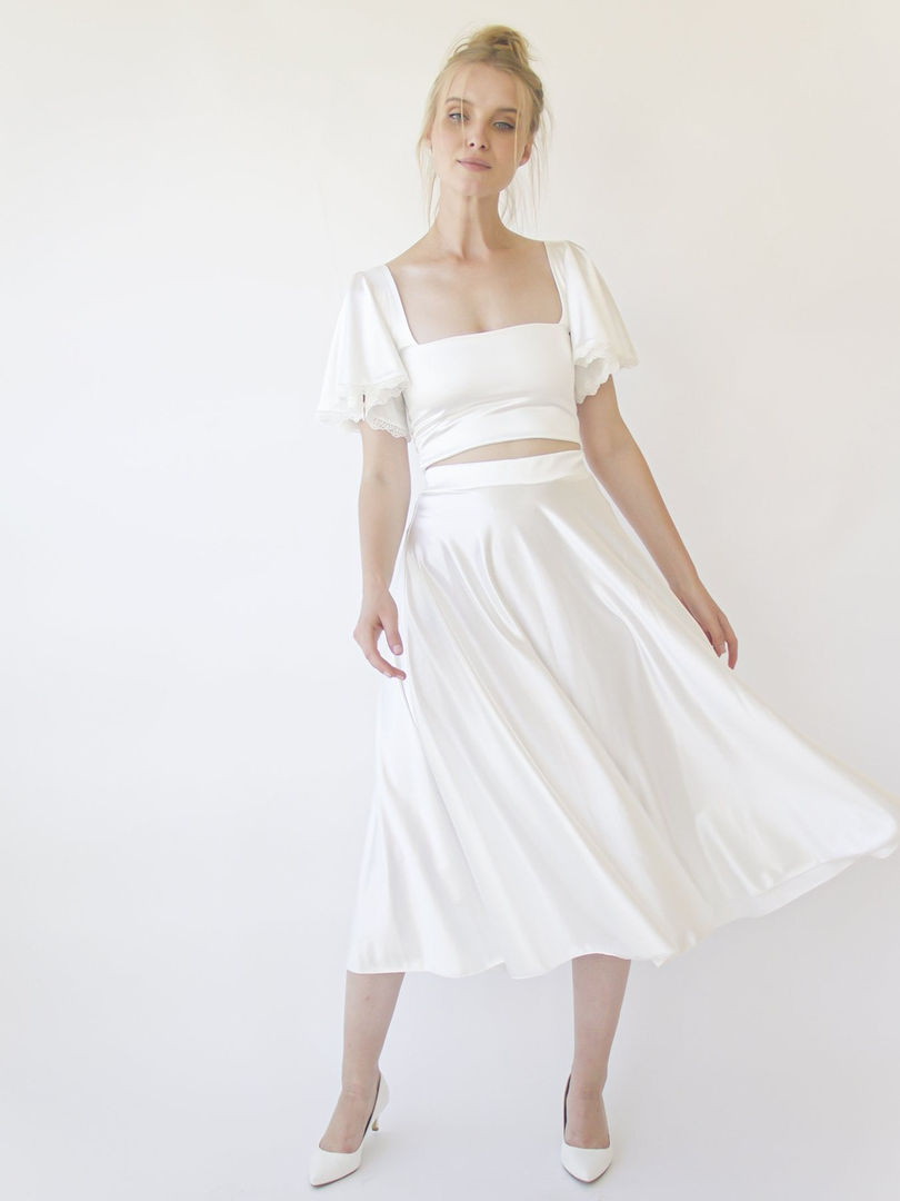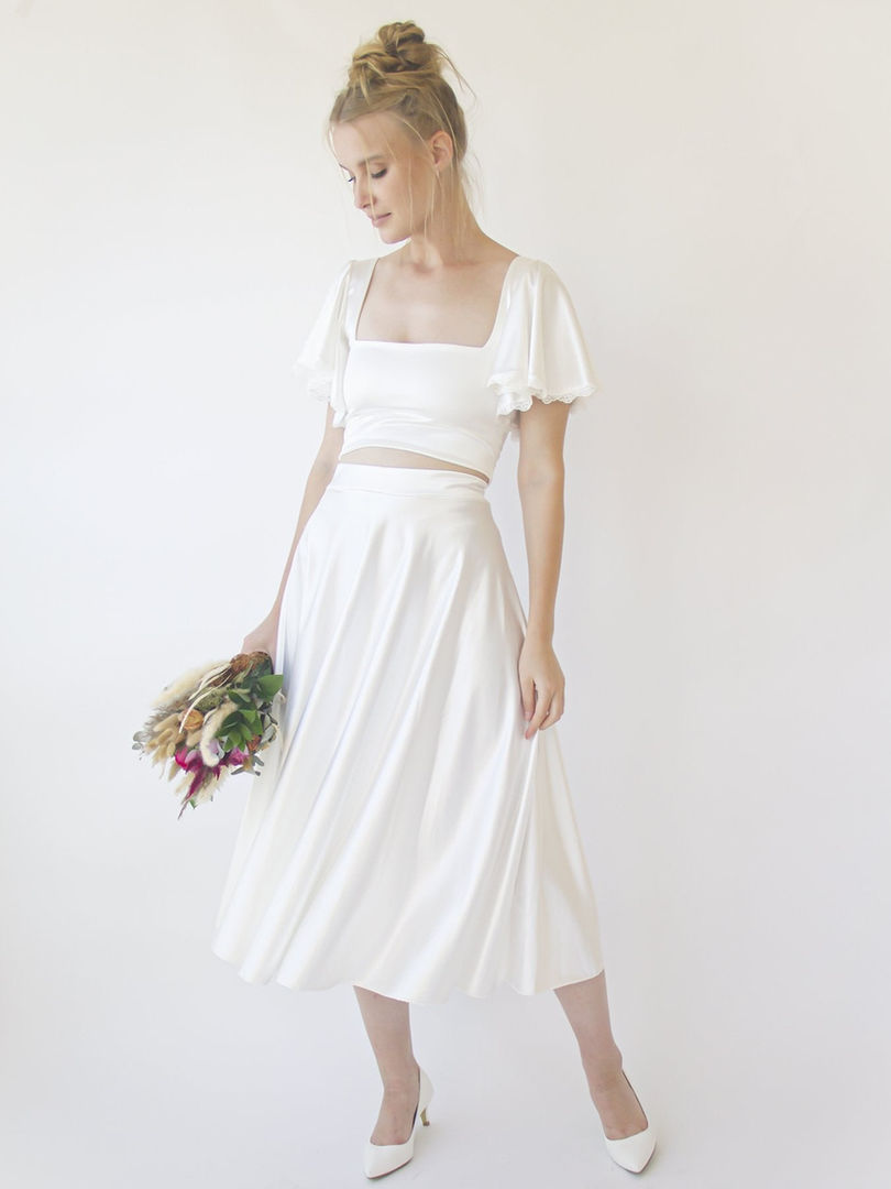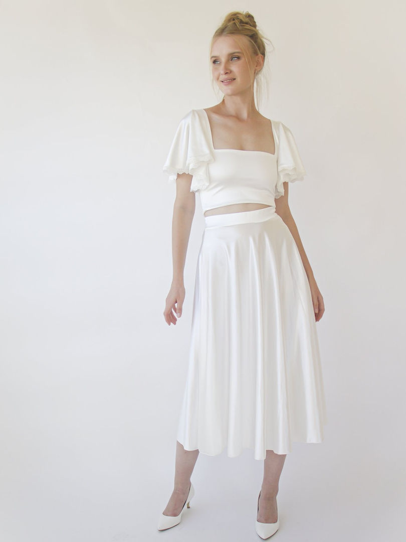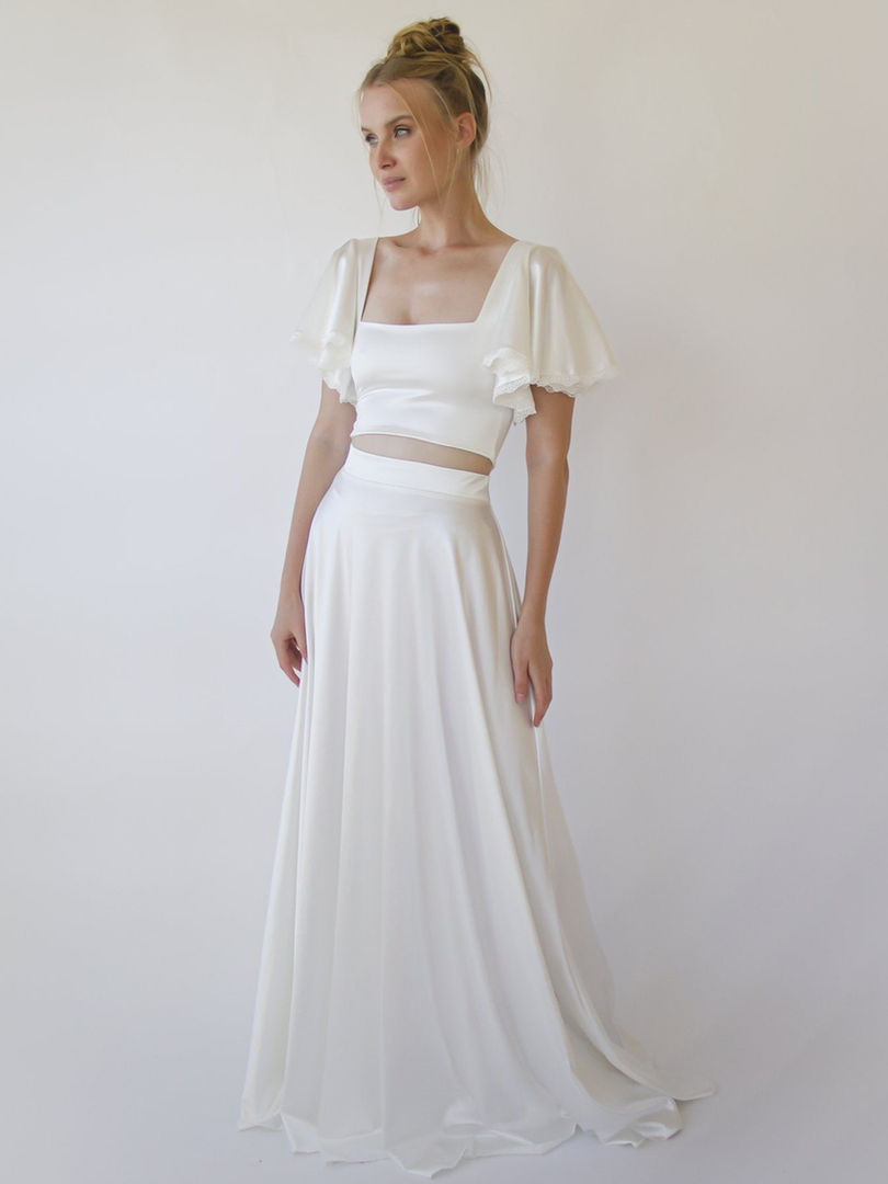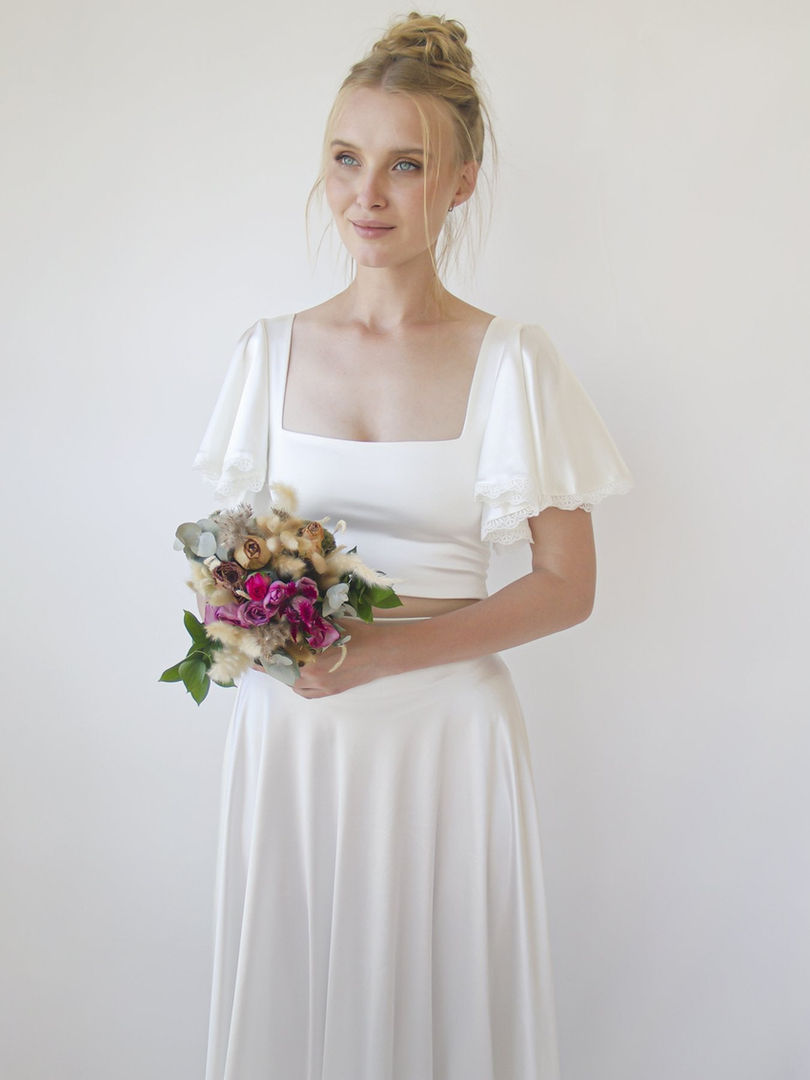 Silky Wedding Cropped Top With Butterfly Short Sleeves #2060