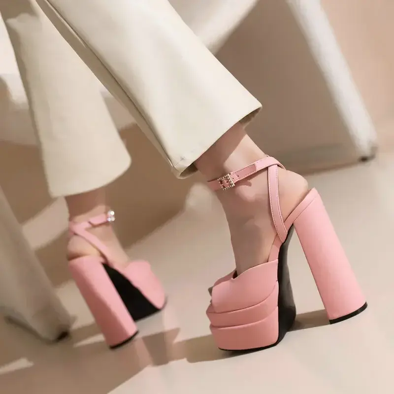 These stunning sandals effortlessly elevate any outfit with their towering platform and secure buckle strap. Designed for both style and comfort, they are a perfect blend of modern design and classic elegance.