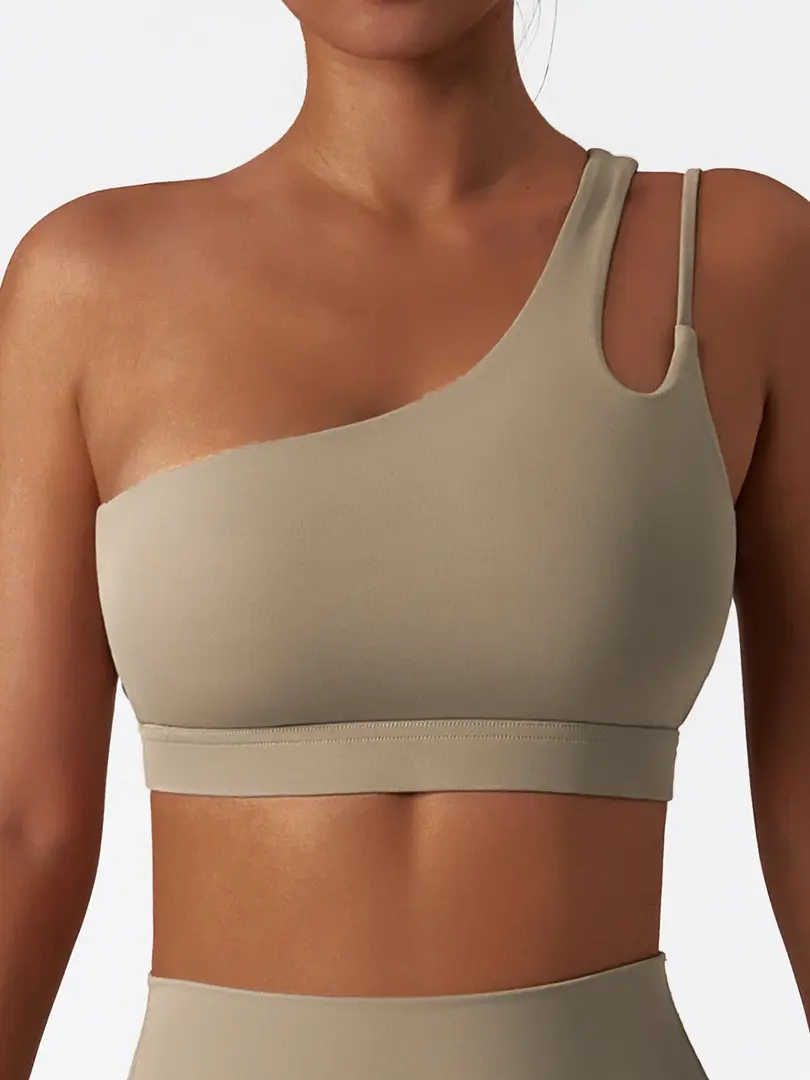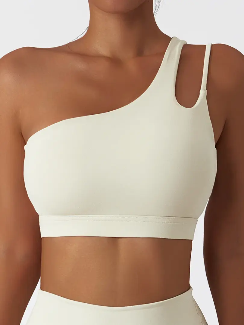 Single Shoulder Sports Bra | Padded Running Workout Gym Top