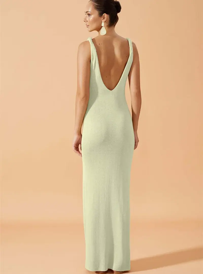 Sleeveless Beach Cover Up Long Dress Backless Knit Dress Sarong