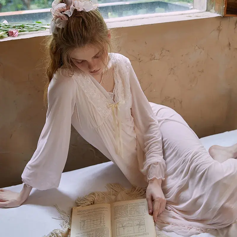 This mid-calf nightgown is a comfortable and stylish choice for relaxing at home. Crafted from soft modal fabric, it features a V-neckline and full sleeves, making it perfect for cozy nights in. The lace detailing adds a touch of elegance, while the solid pattern ensures a versatile look. This nightgown is made from modal, a soft and breathable fabric known for its comfort and durability. This nightgown is perfect for relaxing at home, reading a book, or watching a movie.