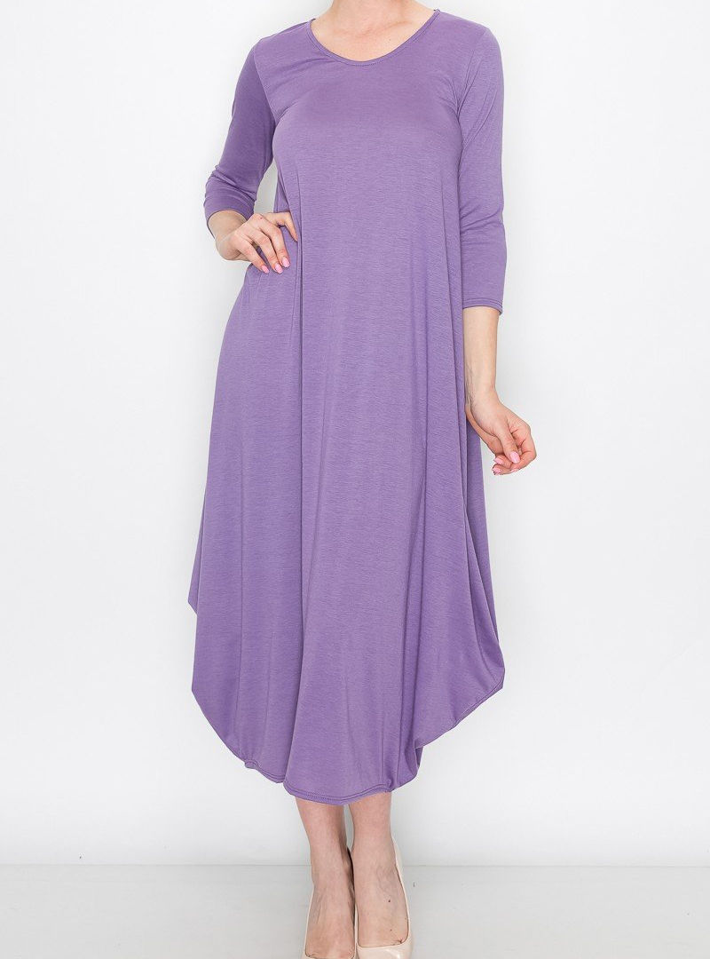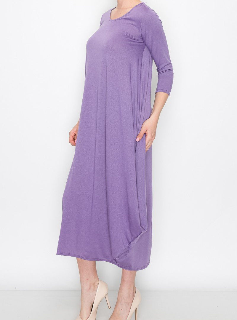 Tags: long casual dress with 3/4 sleeves, comfortable round neck balloon bottom dress, poly rayon spandex blend casual dress, USA made women's long dress, three quarter sleeve comfortable fit dress, casual style long dress with balloon hem, everyday wear long dress, round neck casual dress for women, American made comfortable long dress, ladies casual long dress 3/4 sleeve, rayon blend easy wear long dress, versatile balloon bottom casual dress, spandex stretch long casual dress, relaxed fit long dress with pockets.