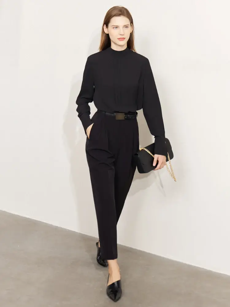 Elevate your everyday style with these versatile pants. With a flattering fit and a touch of pleating detail, they effortlessly transition from casual outings to more dressed-up occasions. Designed with comfort in mind, these pants offer a smooth feel and a touch of stretch for all-day wear. Crafted from a blend of polyester and spandex, these pants offer a combination of durability and flexibility. These pants are perfect for a variety of occasions, from casual weekend adventures to work meetings and social gatherings.