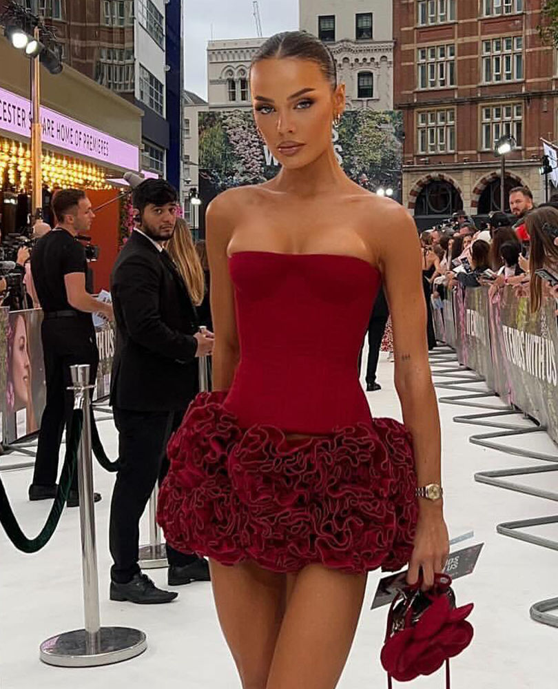 Strapless Red Mini Dress, Back Lacing, Stereoscopic Flowers, Evening, Sheath Dre