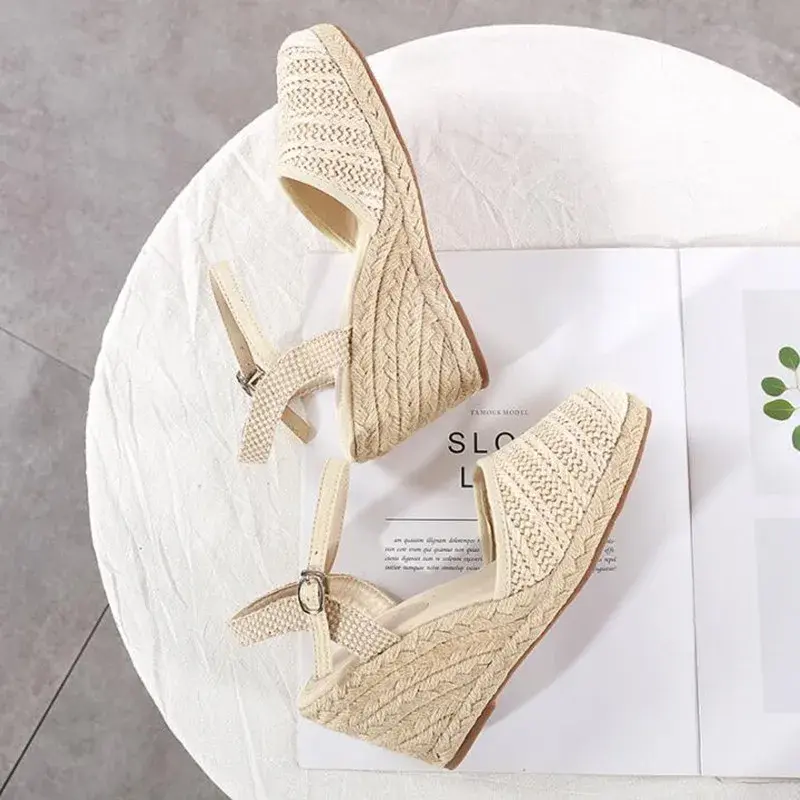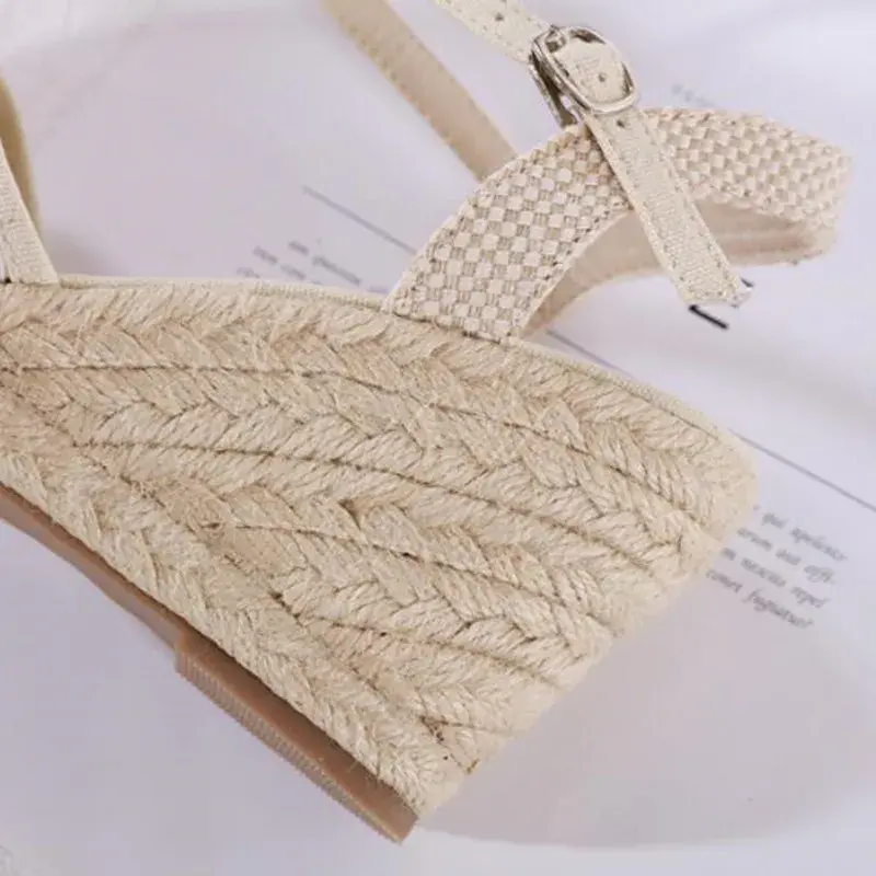Straw Braided Wedge Sandals | Closed Toe Ankle Strap Pumps