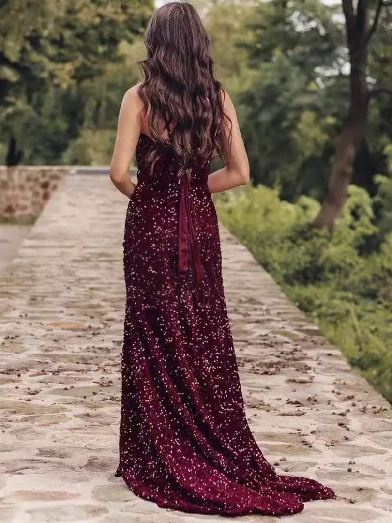 Tags:Sequin formal dress, mermaid evening gown, backless sequin dress, floor length formal dress, sweetheart neckline evening dress, sexy formal dress, high split sequin dress, plus size sequin evening dress, custom size formal dress, sleeveless sequin gown, formal evening dress for women, sequin dress for gala, formal mermaid dress with train.
