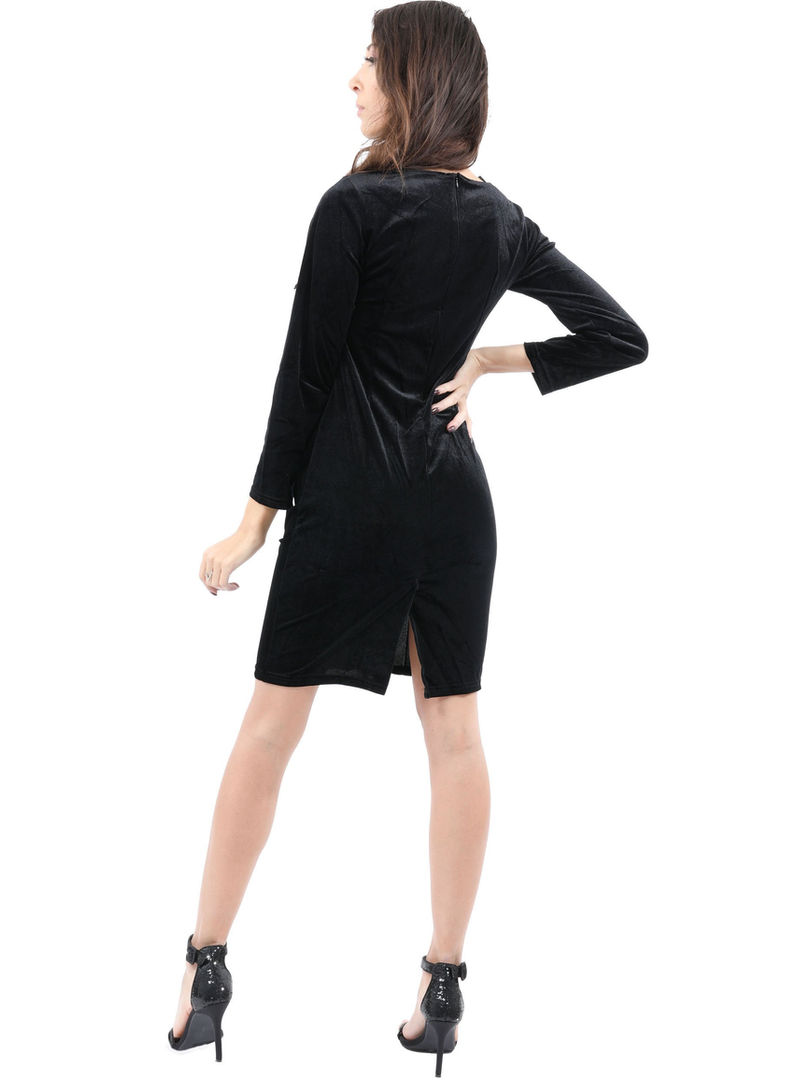 Sophisticated and classy, Stuart Velvet Long Sleeve Little Black Dress. Featuring a luxurious black velvet fabric, long sleeves, and mini body-con silhouette.