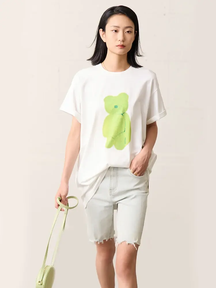 Summer Minimalist Bear Print T-Shirt Casual Office Tee Y2K