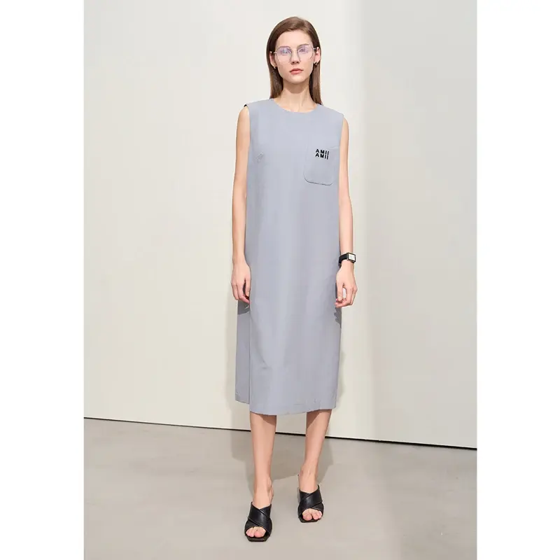 Summer Minimalist Embroidery O-Neck Dress for Women - Commuting Style