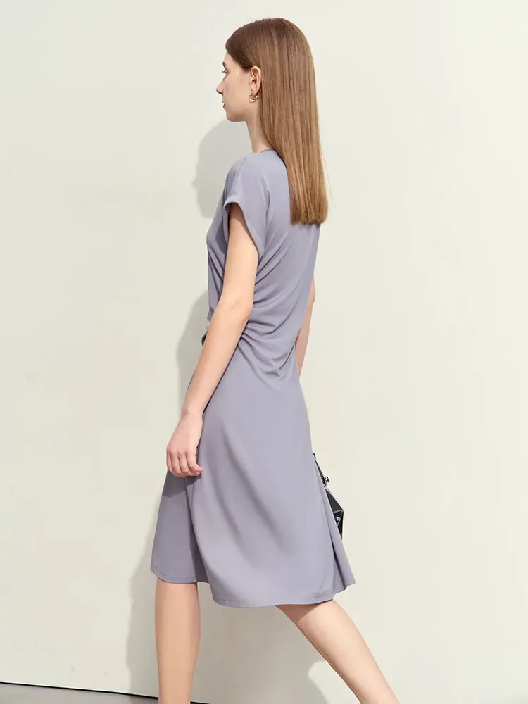 Elevate your style with this sophisticated knee-length dress, perfect for the modern woman. Featuring a sleek slim fit and a flattering O-neckline, this dress exudes confidence and grace. The soft, stretchy fabric offers comfort and allows for easy movement throughout the day.