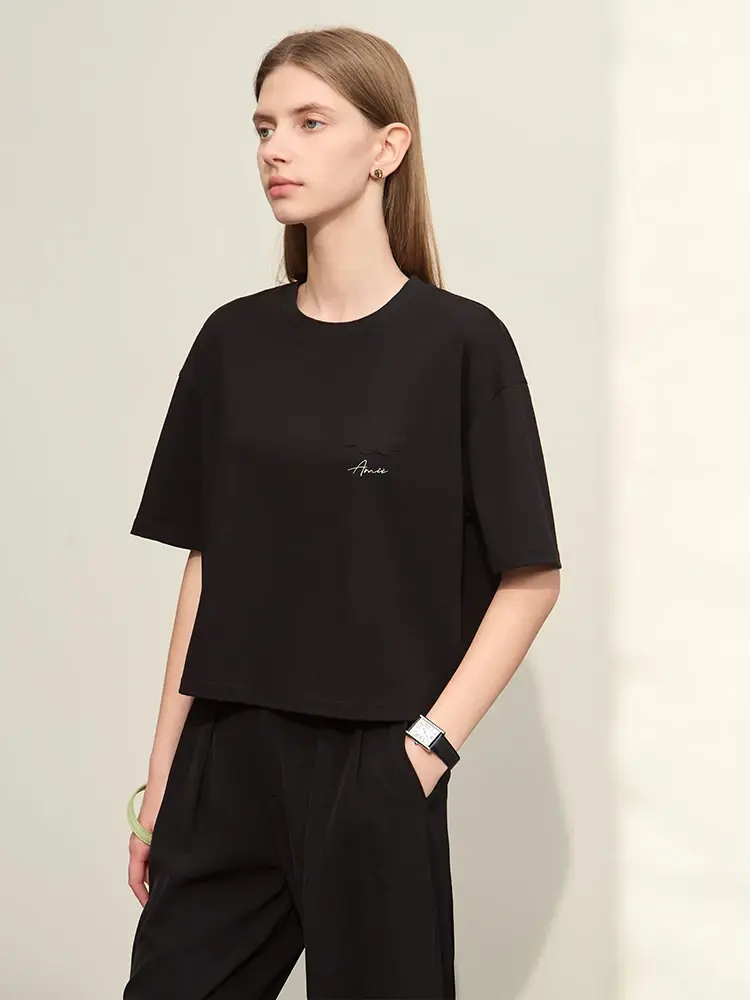 Summer O-Neck T-Shirt Loose Fit Minimalist Casual Short Sleeve Letter Print