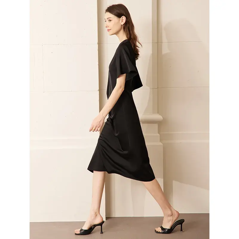Elevate your summer wardrobe with this stylish and comfortable asymmetrical dress. Featuring a flattering batwing sleeve, shirring detail, and a mid-calf length, this dress is perfect for both casual and semi-formal occasions. Its soft and breathable fabric ensures a comfortable fit all day long. This dress is crafted from a blend of polyester and PU, offering a smooth and durable feel. This dress is ideal for a variety of events, from brunch with friends to a summer wedding or a casual date night.