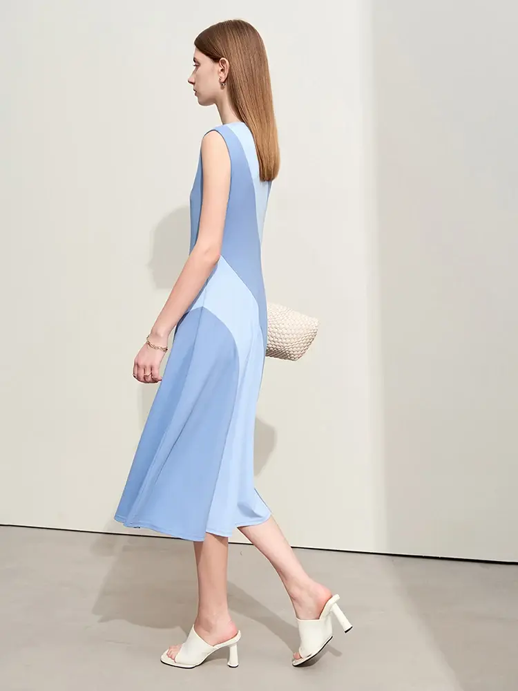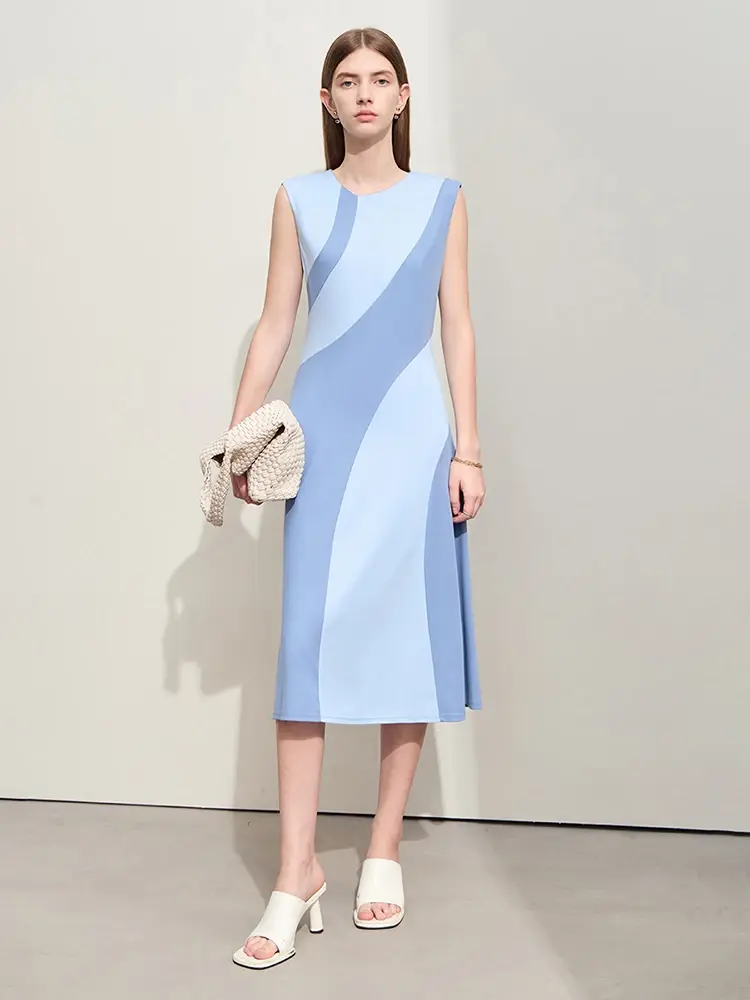 Summer Sleeveless Midi Dress, Stretch Waist, Casual Elegant