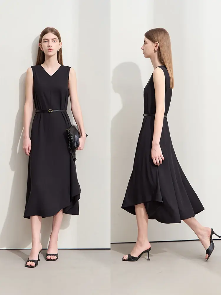 Embrace effortless elegance with this summer-ready dress. Designed for a loose, A-line fit, it flatters a variety of figures while offering maximum comfort. The spaghetti straps and V-neckline create a flattering and sophisticated silhouette, perfect for both casual and formal occasions.