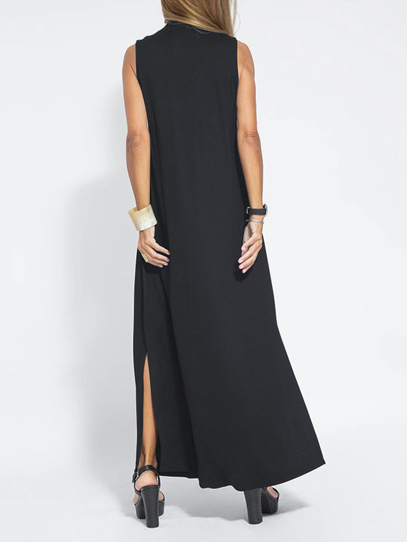 Casual Solid O-Neck Sleeveless Pullover A-Line Knee-Length Polyester Dress