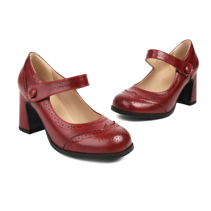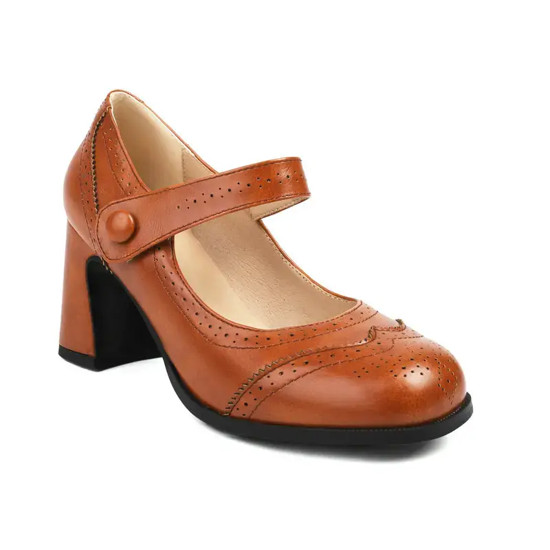 Super Big Size Brogue Shoes Closed Toe Block High Heels