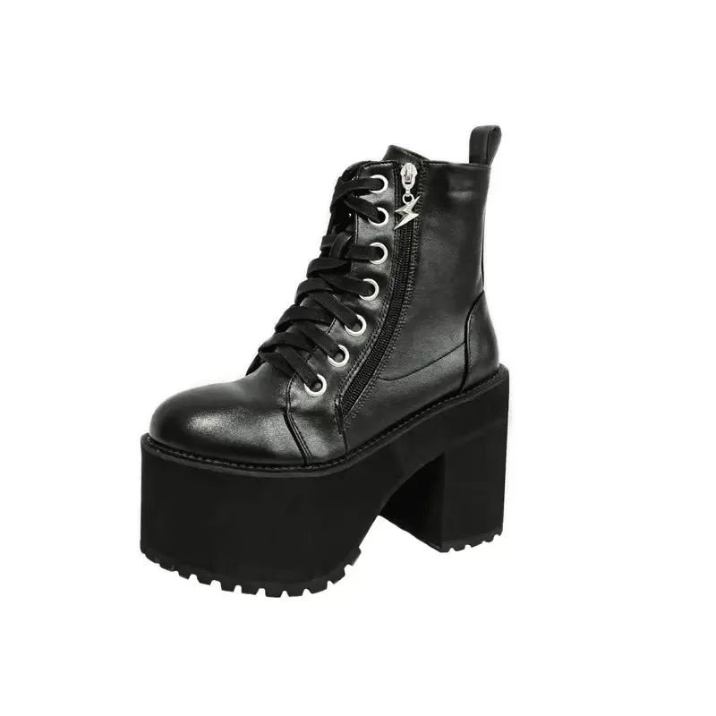 Black Chunky Heels Ankle Boots Platform Boots Round Toes PU Insole Edgy Style