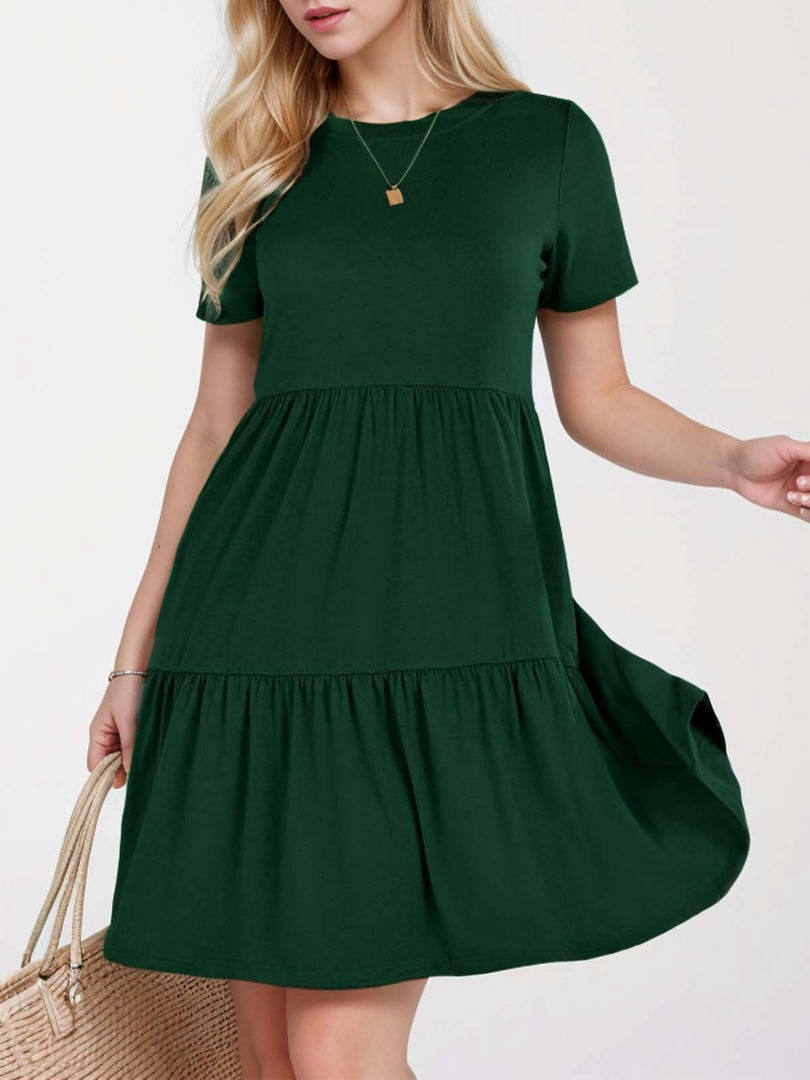 This sleeveless, knee-length dress offers comfort and everyday versatility. It features an O-neck and a single-breasted front, with a regular fit and high stretch for easy movement. The solid color and A-line shape make it a straightforward choice for various occasions.