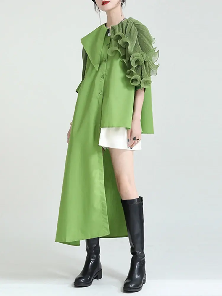 This button-down offers a playful twist on a classic with its stylish three-color design (green, black, and white - avoid mentioning specific colors if not listed). Made from a comfortable, midweight cotton-polyester jersey blend fabric, it provides a flattering loose fit for most body types.