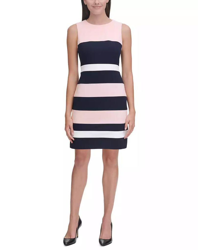 Colorblock Sheath Mini Dress Above Knee Three Quarter Sleeve Polyester
