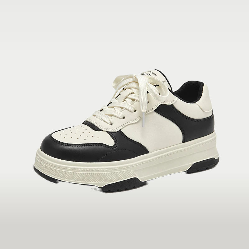 Beige/Black Two-Tone Lace-Up Sneakers Cow Leather Mesh Moisture-Wicking